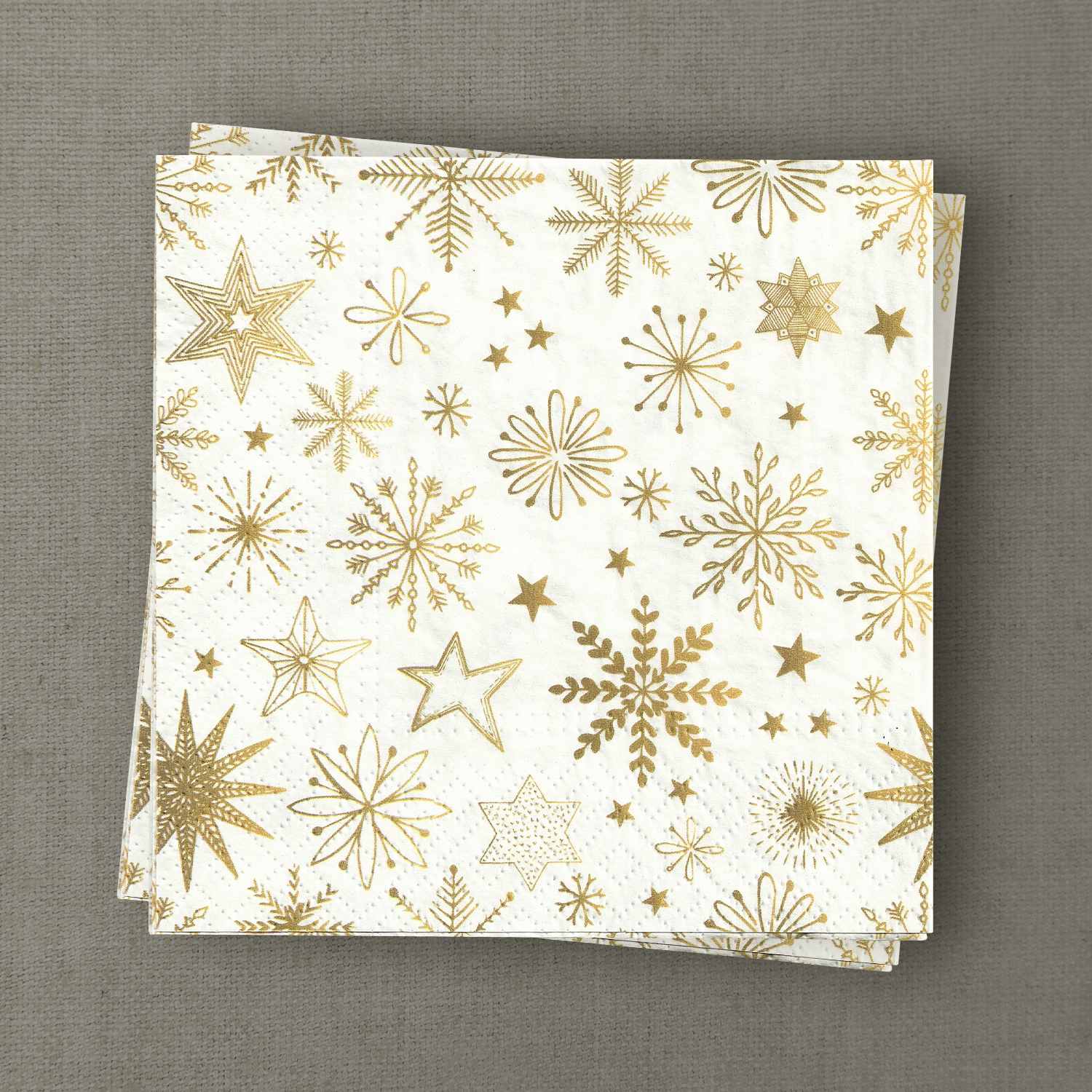 Apportez éclat et raffinement à vos tables de fêtes avec nos serviettes en papier imprimées de flocons de neige et étoiles dorés. Leur motif délicat mêle étoiles et cristaux de neige dans de subtiles nuances d’or, créant une ambiance chaleureuse et élégante. Incontournables pour Noël et les fêtes de fin d’année, ces serviettes habillent vos tables d’une touche festive sans en faire trop. Grâce à leur design raffiné et polyvalent, elles se marient facilement avec tous vos thèmes de décoration : blanc immaculé, vert sapin, rouge traditionnel, noir chic ou encore doré lumineux. Elles deviennent ainsi un élément simple mais essentiel pour composer une table harmonieuse et spectaculaire.